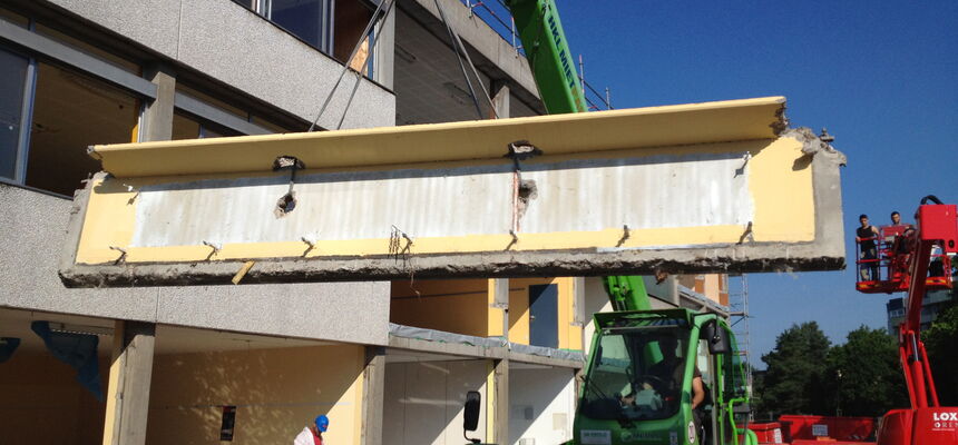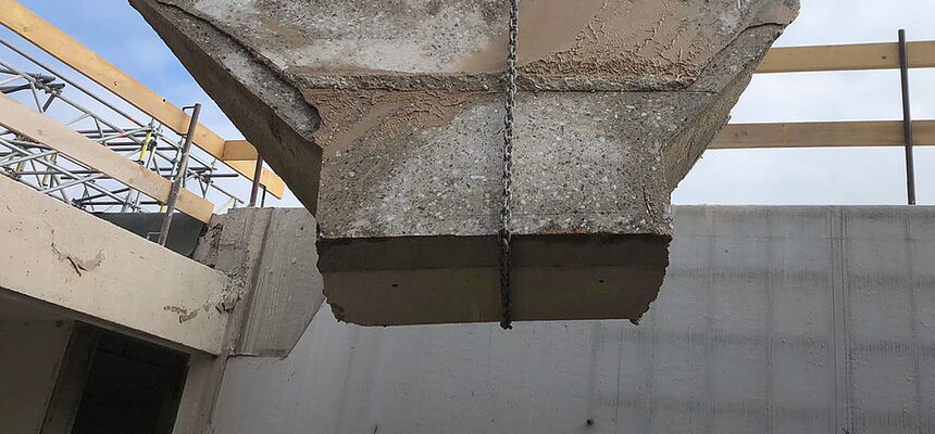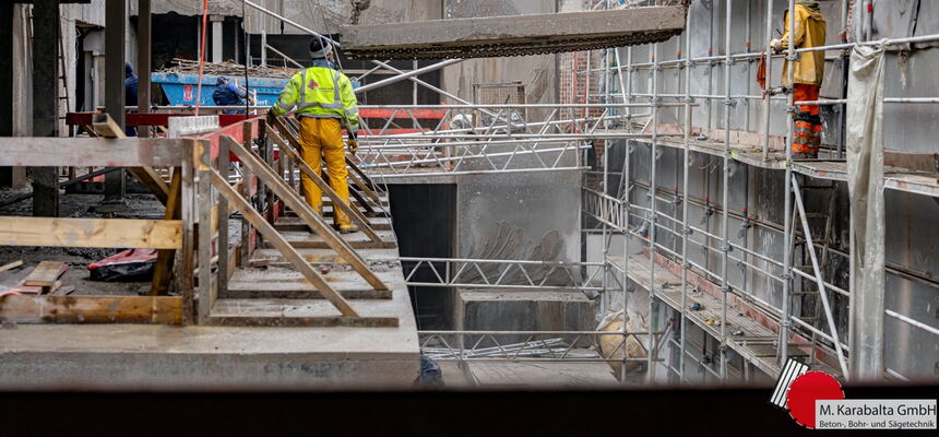 Der große Vorteil zum groben Abbruch ist, dass wir als Fachbetrieb für kontrollierten Stahlbeton-, Beton- und Mauerwerksrückbau, in der Lage sind komplexe Vorhaben präzise, erschütterungsarm und zum großen Teil staubfrei rückbauen können.