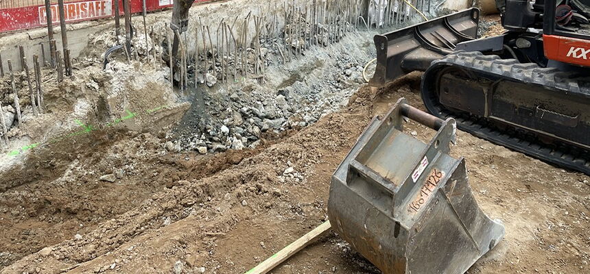An folgendem Bauvorhaben wurden innerhalb von 4 Arbeitstagen 2 Bohrpfahlwände ca. 35 lfm im Stemmverfahren und unter Erhalt der Anschlussbewehrung auf angegebene Höhe gebracht.