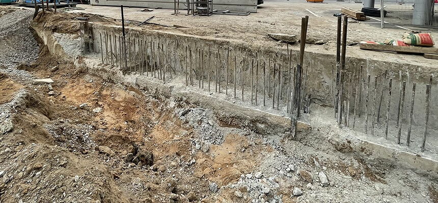 Insgesamt wurden ca. 90 m2 Schlitzwände im Stemmverfahren und unter Erhalt der vorhandenen Anschlussbewehrung auf angegebene Höhe gebracht. Bereits nicht fachgerecht ausgeführte Stemmarbeiten wurden korrigiert.