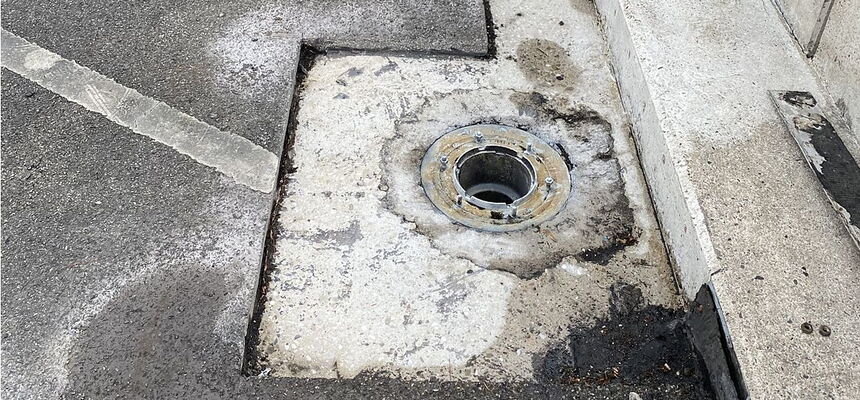 Hier wurden im Zuge der Fahrbahnerneuerung eines Parkdecks ca. 2.000m2 Stahlbeton-Fahrbahnplatten rückgebaut.