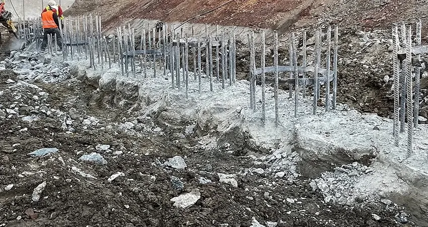 An einem Bauvorhaben wurden innerhalb von 4 Arbeitstagen 2 Bohrpfahlwände mit ca. 35 lfm im Stemmverfahren und unter Erhalt der Anschlussbewehrung auf angegebene Höhe gebracht.
