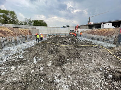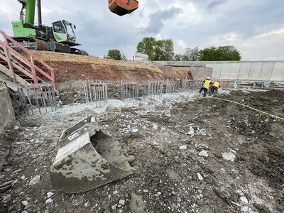 An folgendem Bauvorhaben wurden innerhalb von 4 Arbeitstagen 2 Bohrpfahlwände ca. 35 lfm im Stemmverfahren und unter Erhalt der Anschlussbewehrung auf angegebene Höhe gebracht.