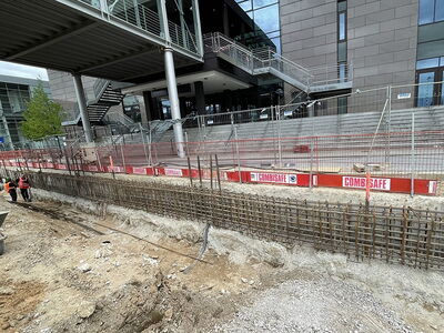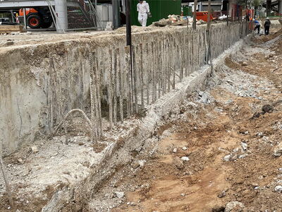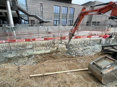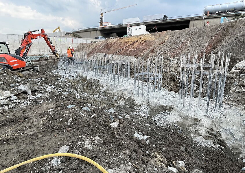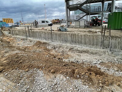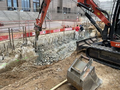 An folgendem Bauvorhaben wurden insgesamt ca. 90 m3 Schlitzwände im Stemmverfahren und unter Erhalt der vorhandenen Anschlussbewehrung auf angegebene Höhe gebracht. Unter anderem wurde eine nicht fachgerecht vorgestemmte Schlitzwand auf Maß gebracht. Die restlichen Schlitzwände wurden zunächst eingeschnitten, sodass keine großen Abbruchkanten entstanden sind.