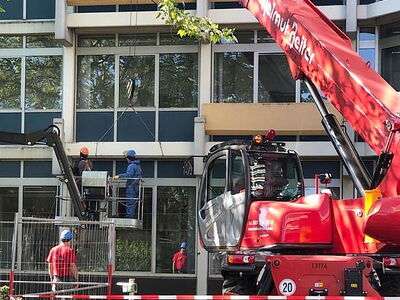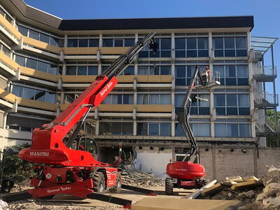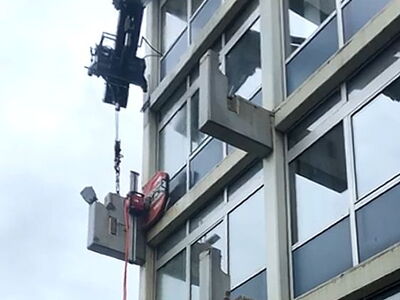 Die einzelnen Elemente der Balkone werden mit einem Teleskopstapler gesichert, durch unsere ausgebildeten Fachkräfte wird über eine Bühne die Wandsäge montiert und anschließend werden die Elemente mittels unserer neuesten ferngesteuerten Wandsägen vom Bestand getrennt. Anschließend wird das Abbruchgut fachgerecht entsorgt.