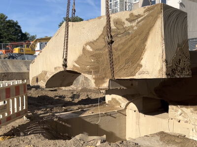 - Ausbau der bis zu 30 t schweren Stahlbetonklötze mittels 220t Autokran