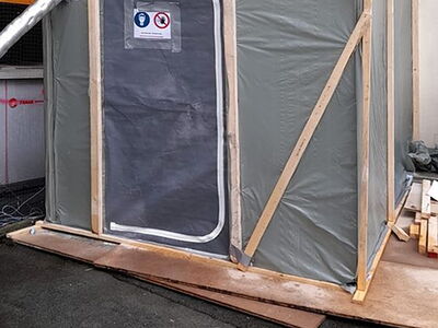 - Rückbau der asbesthaltigen doppelten Abhangdecke mit div. Verkleidungen, einschl. Einrichten des Schwarzbereiches mit allen Nebenleistungen