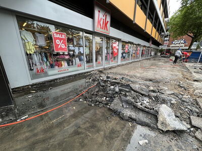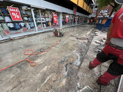 - Rückbau 1.000 m2 Bodenaufbau bestehend aus Abdichtung, Dämmung, Betonschutzplatten, Asphaltschicht und Waschbetonplatten