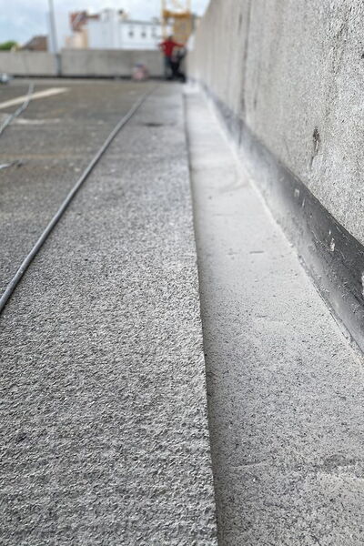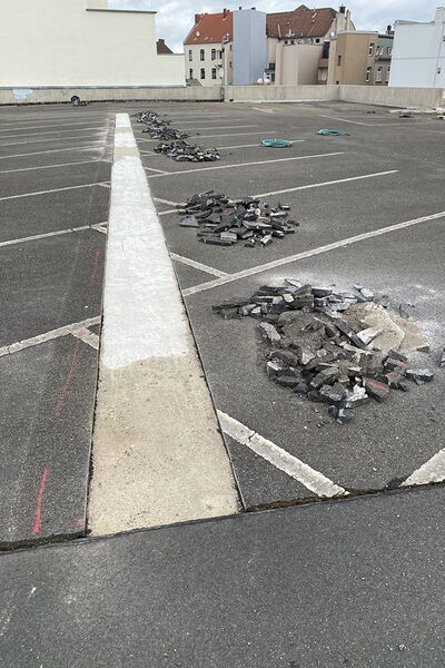 Im Zuge einer Teilinstandsetzung dieses Parkdecks wurden ca. 240 lfm Schlitze in die Asphaltfahrbahn, im Diamantsäge- und Stemmverfahren, hergestellt. Anschließend wurden die Bitumenreste sowie die Wandanschlüsse mittels Diamantschleifgeräten abgeschliffen. Der Bitumen wurde fachrecht entsorgt.