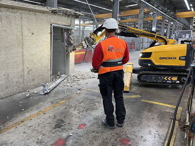 An folgendem Bauvorhaben wurde eine kleine Stahlbetonhütte mittels unseres Abbruchroboters rückgebaut.